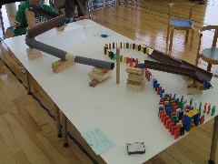 | 説明 | 身のまわりの色々なそざいを使って、 ゴールのカネをならすふしぎなしかけ(レンサシステム)を つくりました。 |