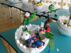| 説明 | 光台8・9丁目こども会のみんなと、クリケットを使って、『たまご』から生まれてくるものをそうぞうして、作品をつくりました。生まれてくるものは、グループによってさまざま!どんな動物(?)がうまれたかな? | ||