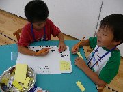 - 初めて出会うお友達やスタッフの方とひとつのテーマに沿って活動することがとても新鮮に感じたと思います。子どもたちが興味を持つようなよい企画を今後も期待しています。整った環境の中で有意義な時間を過ごせたと思いました。ありがとうございました