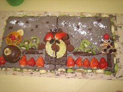 - チョコレートケーキを作るのが大変だったけど、おいしかった。けれどもう少しフルーツをいれたかった。