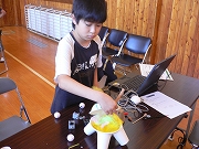 | 説明 | 小さなコンピューター「クリケット」と身近な材料をくみあわせて、プログラムで動くおもちゃをつくってみよう(サポートMITメディアラボ)。「乗ってみたい未来の乗り物」をテーマに、くじで選ばれた2人1チームで、作品を作りました。松ぼっくりから、ボルトまで、いろいろなそざいを使って、全員が頭をひねり、切ったり、はったりしながら、自分たちの「乗ってみたい未来の乗り物」を作り上げました。 | ||