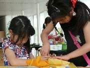 つくる前にそざいと道具のかくにん。いろんなそざいを教えてくれたよ。
