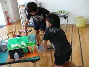 「この板どうやったら立つかな?」2人で相談しながらつくります。