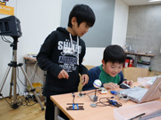 | 説明 | 小さなコンピューター「ピコクリケット」とモーターやライト、センサーやスピーカーと身近な材料をくみあわせて、プログラムで動くおもちゃをつくってみよう。 (サポート:MITメディアラボ) |