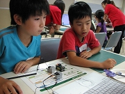 | 説明 | 小さなコンピューター「クリケット」と身近な材料をくみあわせて、プログラムで動くおもちゃをつくってみよう。(サポートMITメディアラボ) (8月21日、22日開催 21日:17名、22日:14名) |