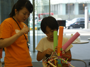 このグループは、くきにツルがまきついています!葉っぱの形も細かく、ていねいにつくっていたね。チームワークもすばらしかった!