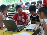 | 説明 | 小さなコンピューター「ピコクリケット」とモーター、センサーやスピーカーと身近な材料をくみあわせて、プログラムで動くおもちゃをつくってみよう。(サポート:MITメディアラボ) | ||