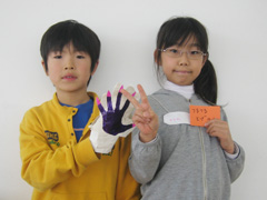 みんなの顔と同じくらいの大きな手が完成!写真をとろう。 - 【18.作品シートを書こう】