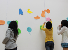 黄色い大きな羽に色とりどりの首かざり。天使をつくっているんだって。 - 【14.せいさくぁ
