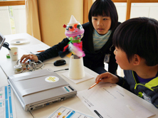 | 説明 | 小さなコンピューター「クリケット」とモーターやセンサー、スピーカー、約200種類のいろいろな素材にみんなのアイディアを組み合わせて、プログラムで動くおもちゃをつくろう。グループで協力しながら、動きはパソコンでかんたんにつくれるよ! テーマは「ふしぎな生物」。 ※このワークショップは、南三陸町立入谷小学校5年生の「総合の時間」の授業の中で行われました。 |