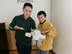5年生の作品と合わせて、にぎやかになりました!最後はいっせいに動かしてかんしょう会をしました。