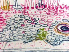 初めて使うオイルパステル。線をかいたり、色を重ねてこすったり練習をしてみました。 - 【5.スケッチの練習◆