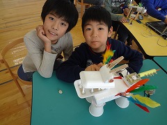 - 今日は、とっても楽しかったです!!とくに、3人で工作をつくるのが楽しかったし、ほかのみんなの作品もすごかったです。