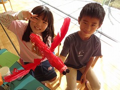 - さくひんをつくるのが、たのしかったです。さくひんも、もってかえりかったけど、さくひんが大きかったので、むりだとおもいました。またやりたいです。つぎはひとりでつくるくりけっともいいと思います。
