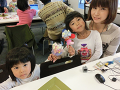 | 説明 | 小さなコンピューター「ピコクリケット」とモーターをくみあわせて、プログラムで動くおもちゃをつくりました。テーマは「動くクリスマスオブジェをつくろう!」全4回開催、合わせて26組60名が参加しました。(サポート:MITメディアラボ) ※このワークショップは、『芝浦工業大学 豊洲キャンパス 第8回大学開放DAY!』のイベントとして開催しました。 |