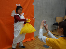 衣しょうを決めたら、ポーズも考えます。「はずかしがらずに、こんな感じで!」 - 【15.小道具づくりぁ