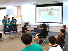 発表会では、みんなの前でドローンを飛ばしながらナレーション!ほご者の方もきょう味しんしんで見守ってくれました